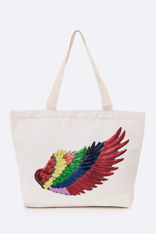 Iconic Hamsa Eye Sequins Patch Canvas Tote