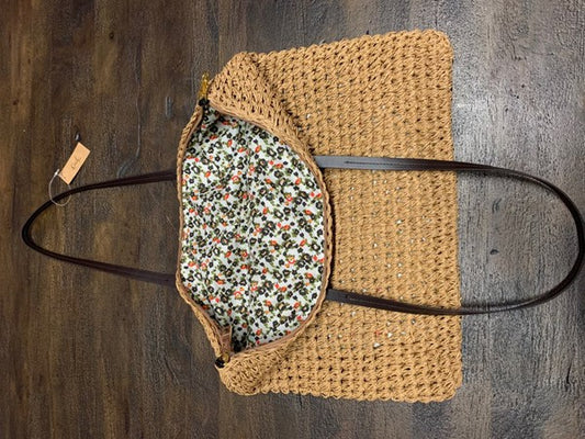 SQUARE TAN TOTE STRAW BAG