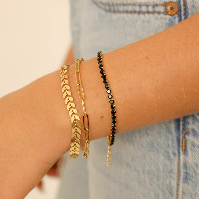 BLACK RHINESTONE TENNIS BRACELET 18K PVD *WATERPROOF*
