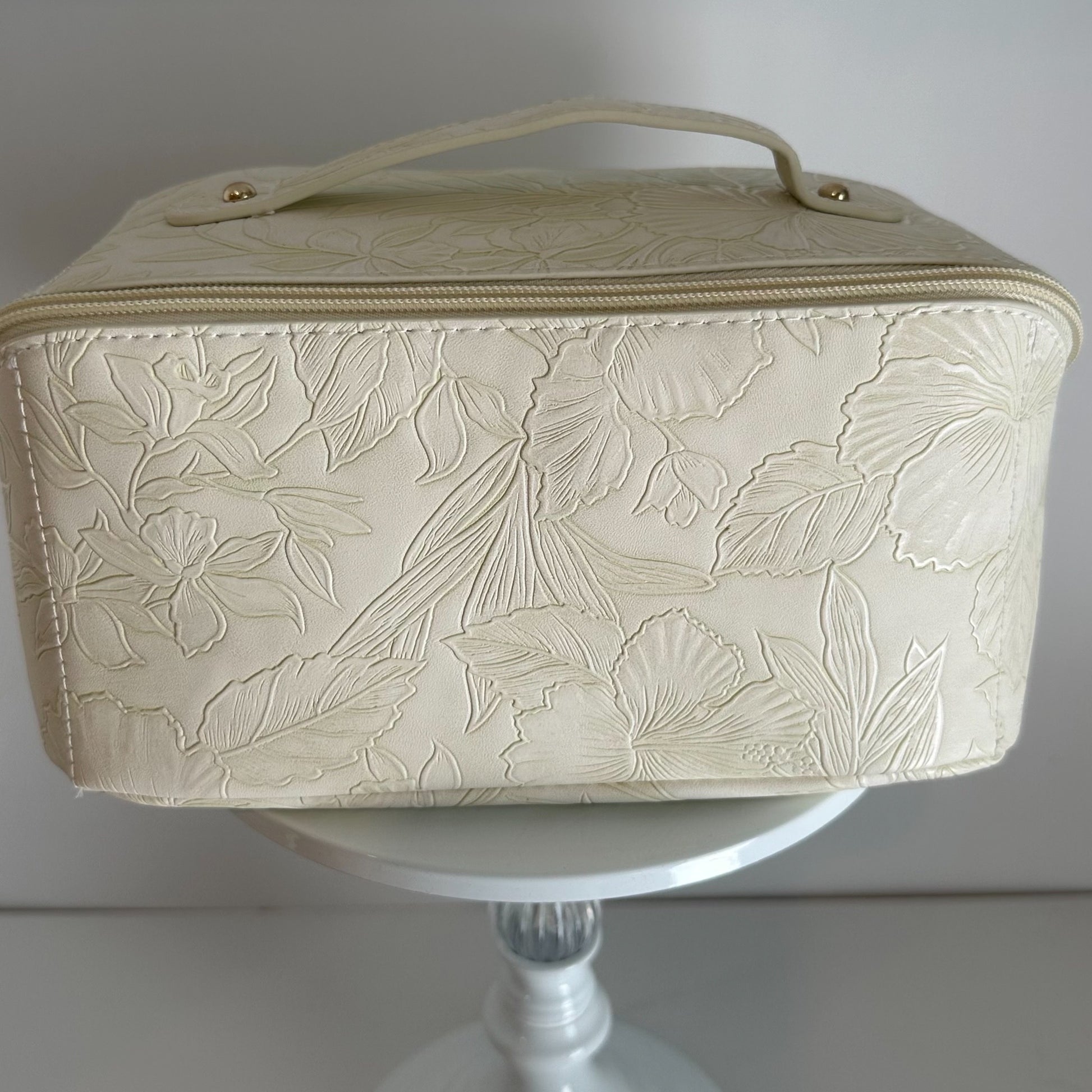 These gorgeous cosmetic bags are a rectangle shape with a diagonal zipper that allows it to open completely flat so it is easy to see & grab all the essentials. Perfect for travel!