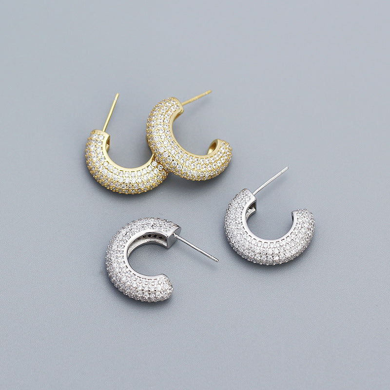 Holiday Micro Setting CZ C Shape 925 Sterling Silver Hoop Earrings