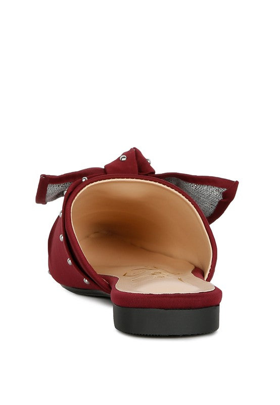 Studded Bow pointed toe mules are for all day wear and you can carry these with most of your casual outfits. Lightly cushioned and with construction that is super comfortable.