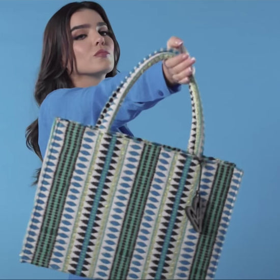 Introducing Maria Victoria - The Julia Tote, a stunning and exquisite handmade fabric tote that showcases the vibrant beauty of Indian textiles. Skillfully crafted in India, this luxurious bag combines traditional craftsmanship with modern design, resulting in a truly unique accessory.