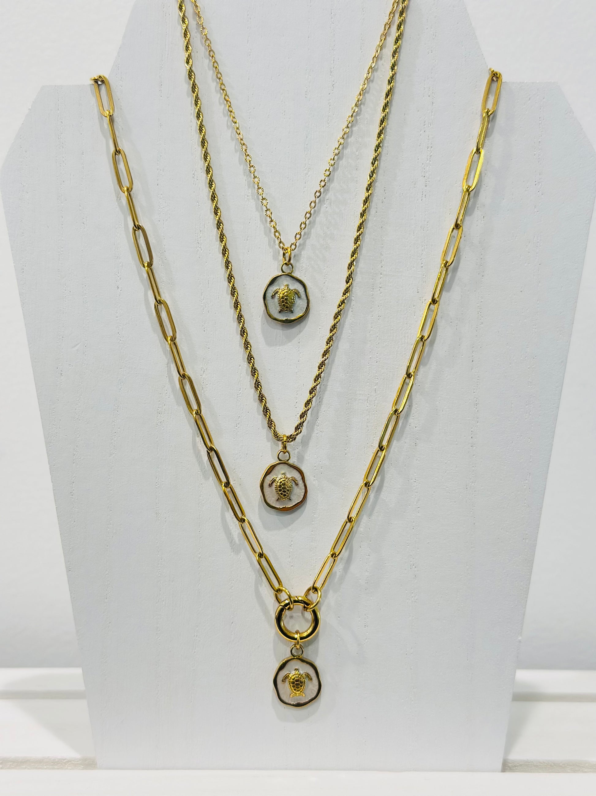 MOTHER OF PEARL TURTLE CHARM NECKLACE 18K PVD *WATERPROOF*